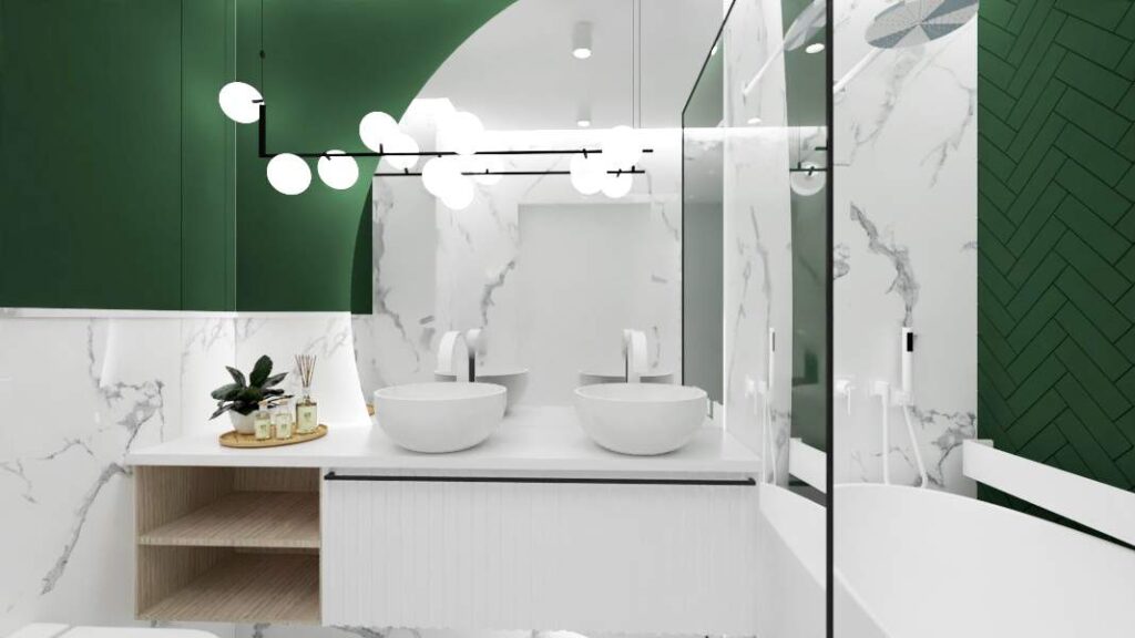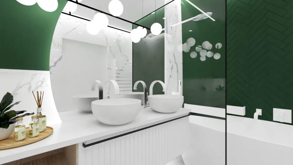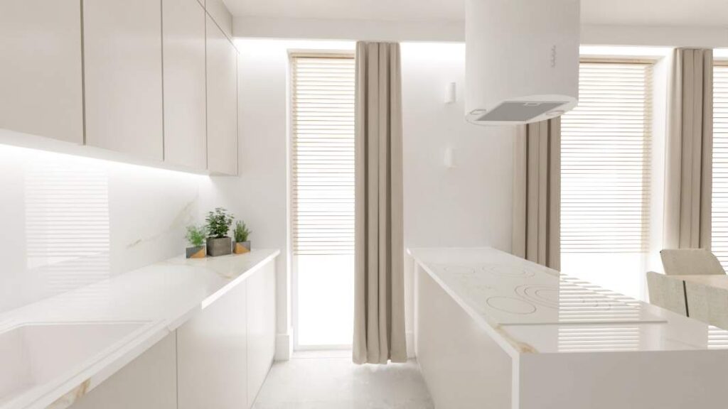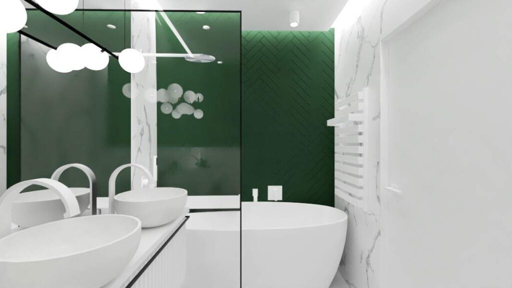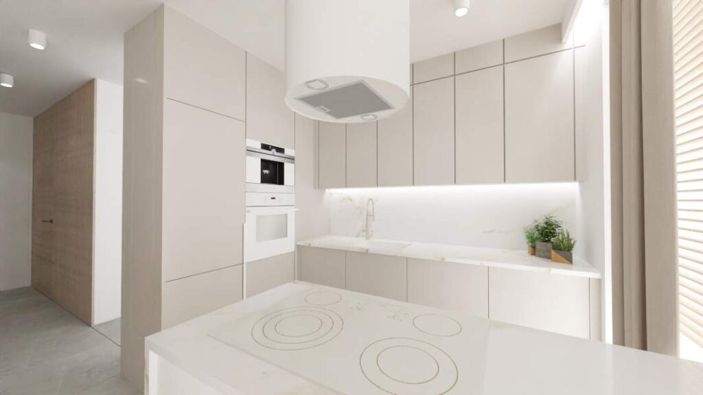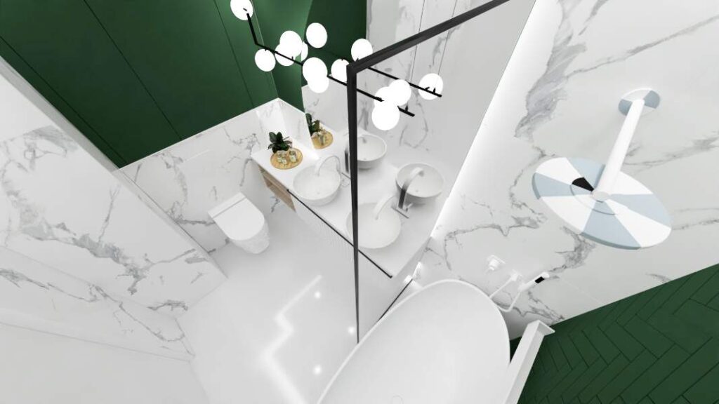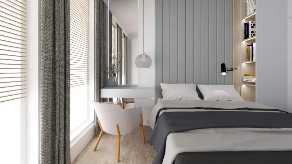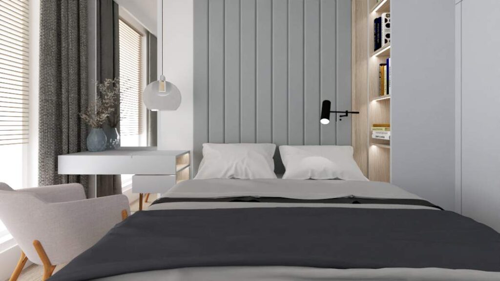 Projekt kompleksowy mieszkania około 60m2 w stylu nowoczesnym – w skład projektu wchodziła strefa wejściowa, korytarz, garderoba, salon z kuchnią, jadalnia, sypialnia oraz łazienka.